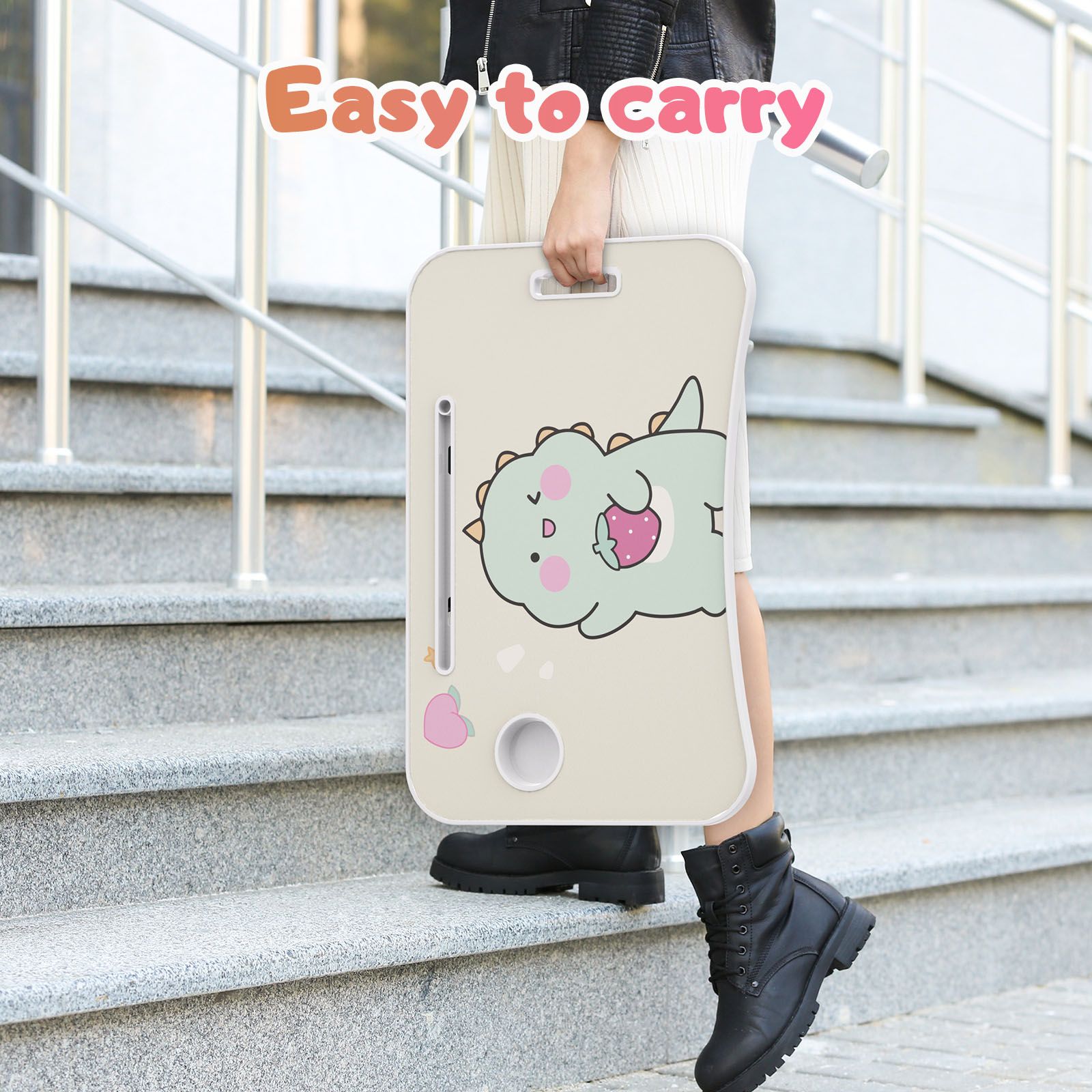 4.Portable & Space-Saving: The thickness of this lap desk is only 1.77 inches when its legs are folded. When not in use, you can conveniently store it under the bed or sofa to save space. Additionally, it features a handle design, allowing you to easily carry it to any location, including outdoor use.