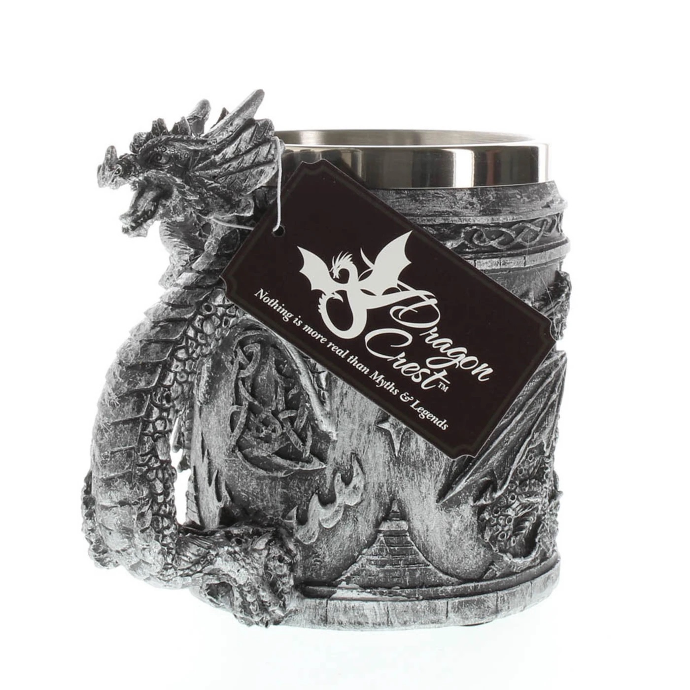 Introducing our premium Stainless Steel Dragon Mug, the perfect blend of durability and style for your beverage needs. Crafted from high-quality stainless steel, this dragon-themed mug is designed to keep your drinks at the ideal temperature while adding a touch of fantasy to your collection. Ideal for coffee, tea, or any beverage of your choice, this mug features an intricately detailed dragon design that is sure to impress. Whether you're at home, in the office, or on an adventure, this stainless steel mug is your go-to choice for a unique drinking experience. Explore the magic and elegance of our Stainless Steel Dragon Mug today and elevate your drinkware collection with this must-have accessory.