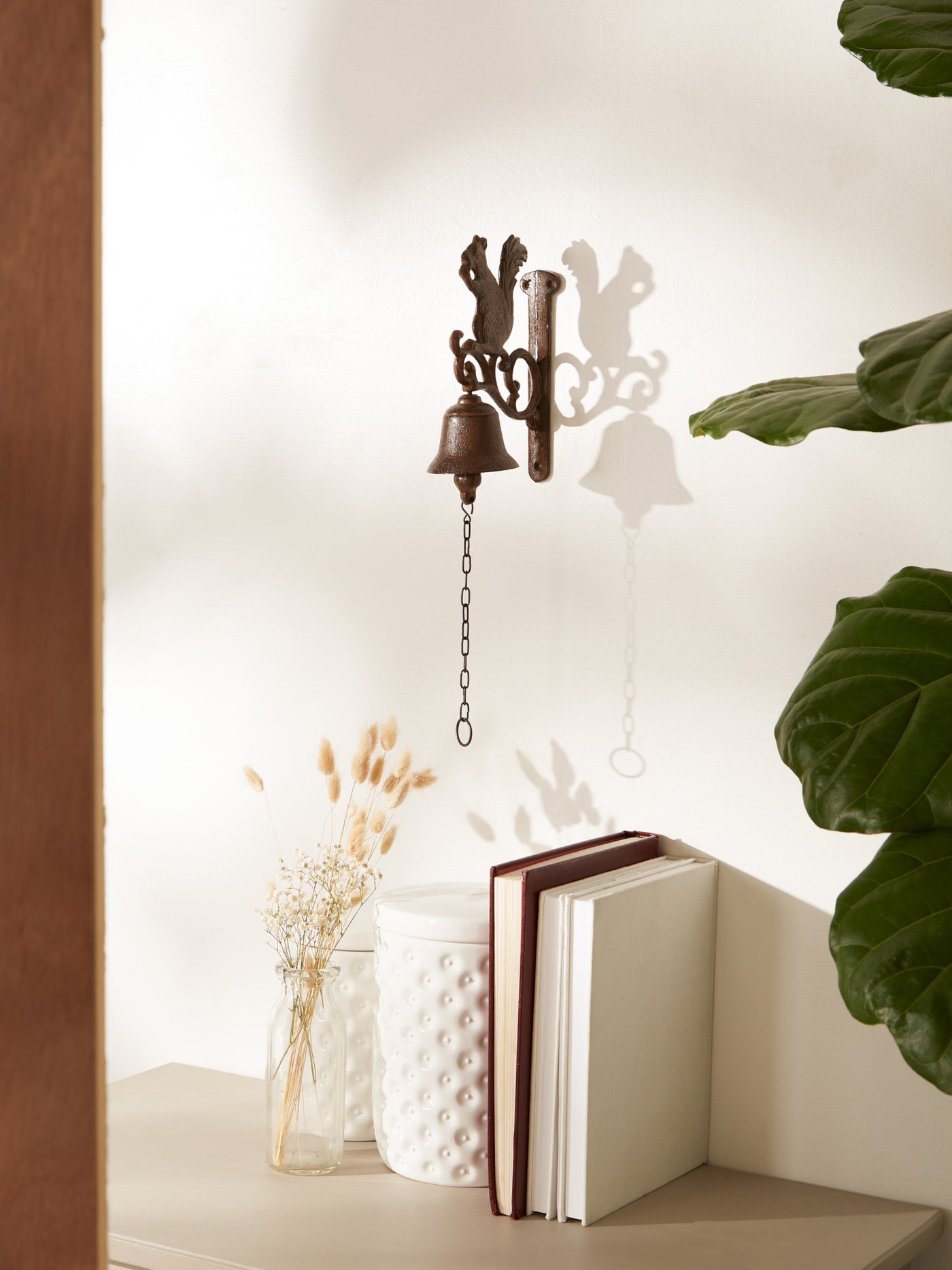 Hang this decorative cast iron dinner bell anywhere for a pop of fun and function. This beautiful cast iron outdoor decor will become a favorite piece that will last for years to come.
