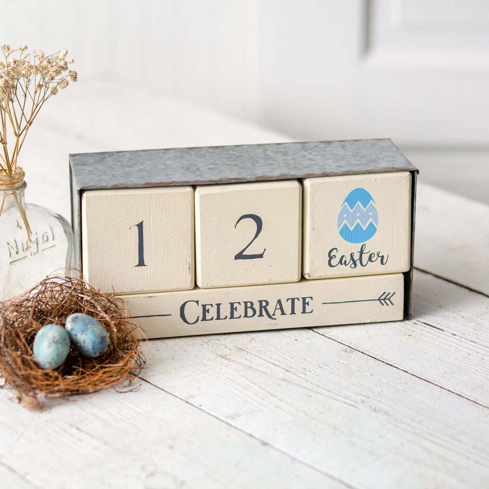 This holiday countdown calendar is a great item for celebrating some of the more important days of the year. Holiday blocks include Christmas, birthday, 4th of July, Easter, Thanksgiving, and Halloween. Numbered blocks include the appropriate combination of digits to start the party at least a month in advance.
