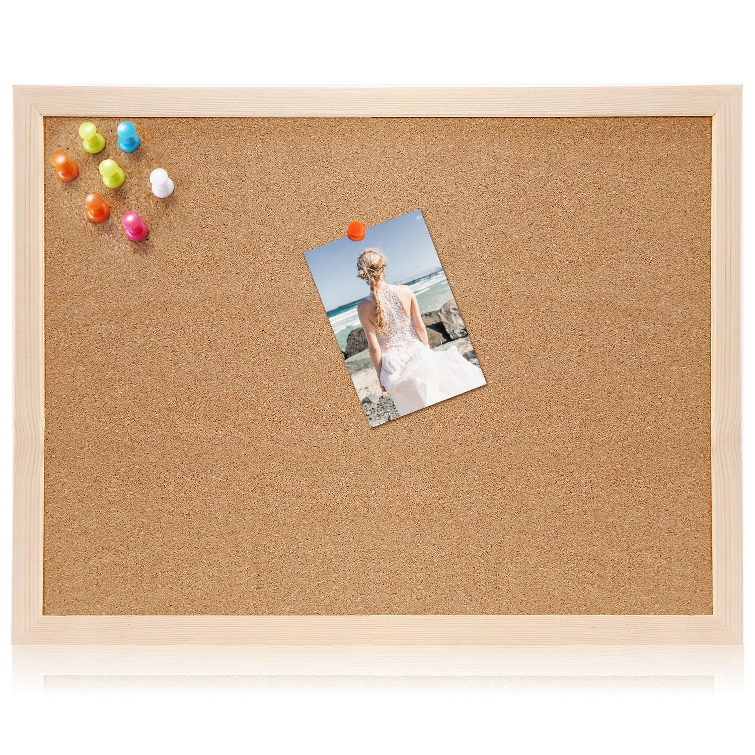 Our cork board is made of premium natural cork and solid wood frame, 100% safe, non-toxic and odorless. The well-polished frame is smooth and comfortable to hold without hurting your hand. The reusable cork board is very easy to use, you can pin your notes, messages, photos and any other papers to the board by using the included colorful pushpins. There also is a hemp rope and 2 steel hangers for you to hang the board on the wall horizontally or vertically, which can be finished in short time. The light-weight ensures the board won’t fall easily. We offer you 4 optional size (S, M, L and XL),you can choose your size according to the space and your needs. The cork board is suitable for multiple occasions: you can use it in living room for photos, study room for notes, office for working memo, and in school and shops for posters and advertisements.