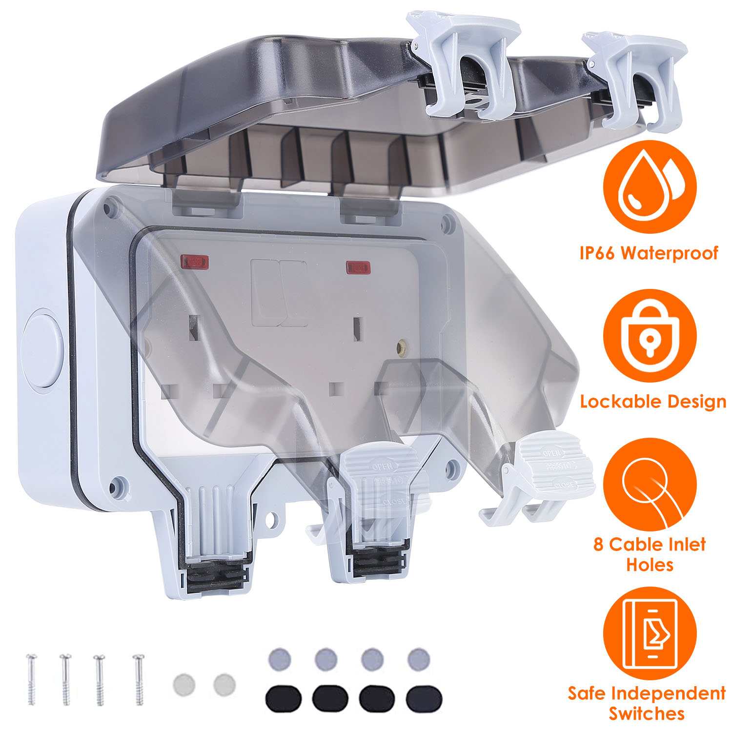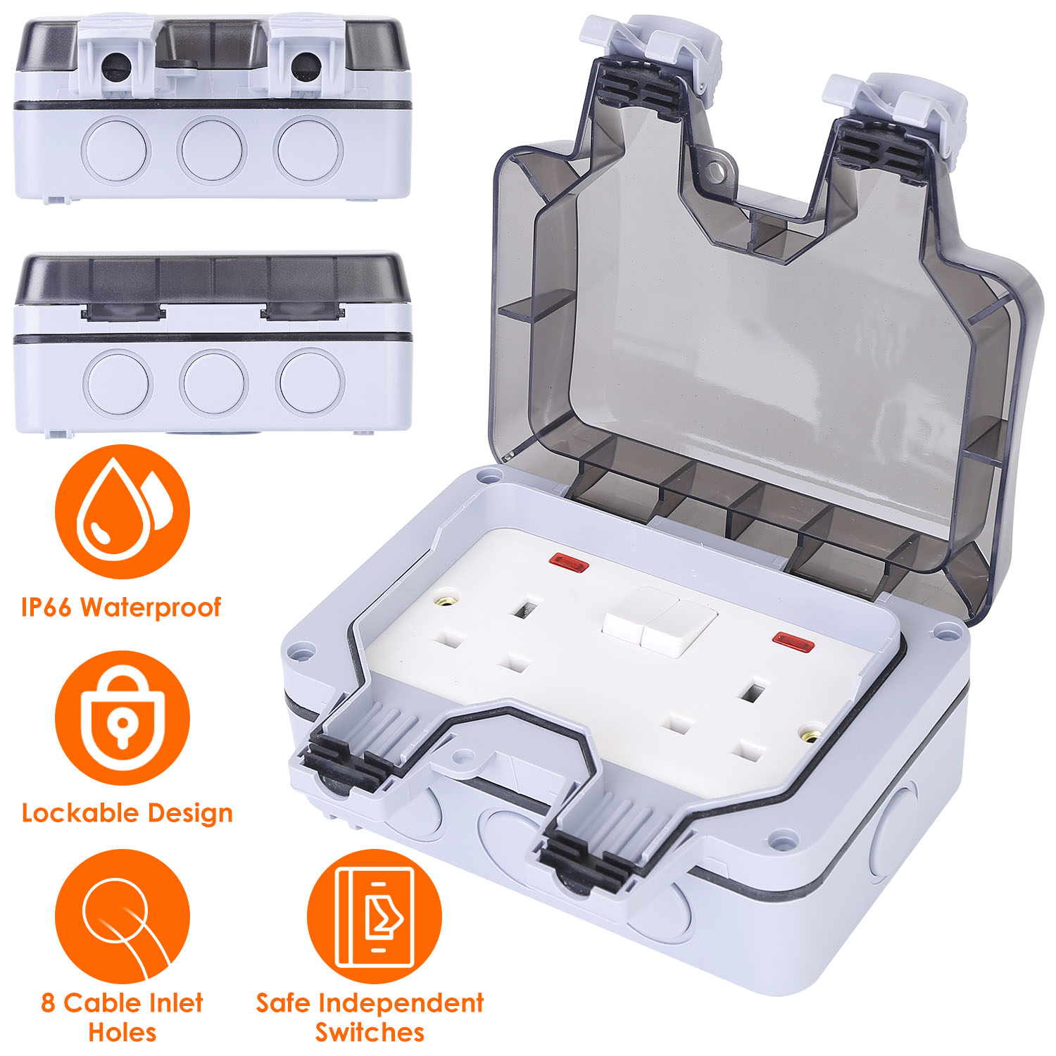 Double Outdoor Socket IP66 Waterproof 13A 2 Gang UK Plug Twin Switched Double Socket Electrical Wall Outlet Garden Socket Box w/ Lockable Covers Double Outdoor Socket IP66 Waterproof 13A 2 Gang UK Plug Twin Switched Double Socket Electrical Wall Outlet Garden Socket Box w/ Lockable Covers Double Outdoor Socket IP66 Waterproof 13A 2 Gang UK Plug Twin Switched Double Socket Electrical Wall Outlet Garden Socket Box w/ Lockable Covers Double Outdoor Socket IP66 Waterproof 13A 2 Gang UK Plug Twin Switched Double Socket Electrical Wall Outlet Garden Socket Box w/ Lockable Covers Double Outdoor Socket IP66 Waterproof 13A 2 Gang UK Plug Twin Switched Double Socket Electrical Wall Outlet Garden Socket Box w/ Lockable Covers