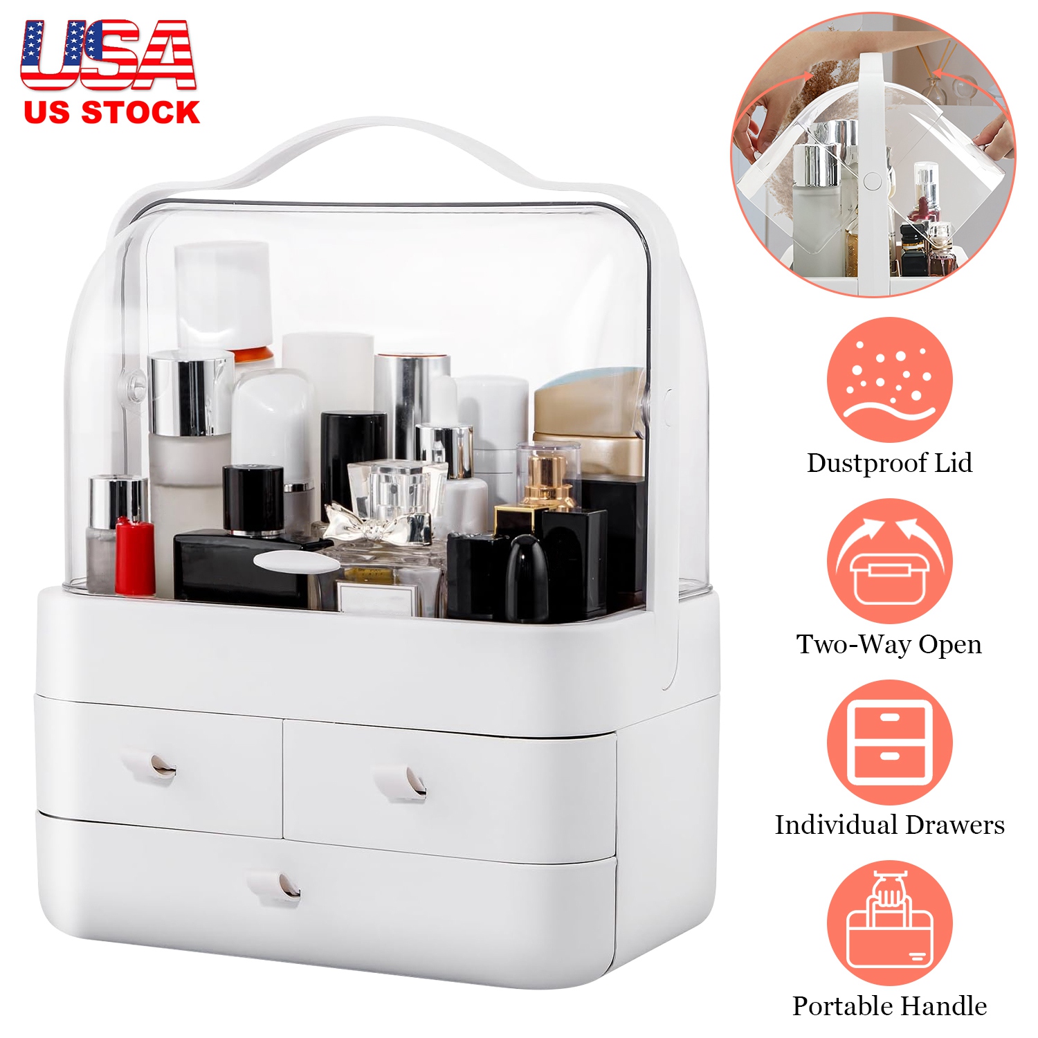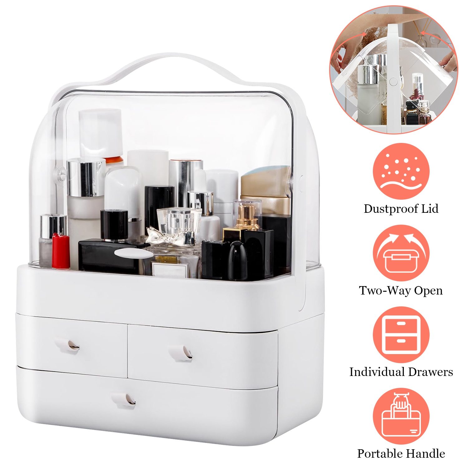 Home > 3 Tiers Makeup Organizer Cosmetic Storage Box with Dustproof Waterproof Lid Portable Handle Drawers Cosmetic Display Case for Bathroom Bedroom Dressin